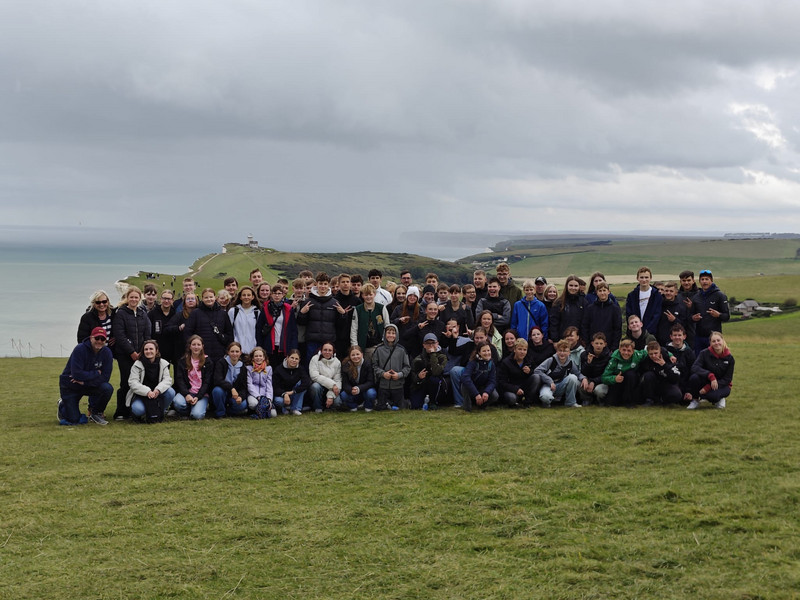Letzten Monat unternahmen die 8. und 9. Klassen unserer Schule die alle zwei Jahre stattfindende Sprachreise nach England. Die Reise fand vom 29. September bis zum 5. Oktober statt, unser Ziel war Hastings in Großbritannien. Der Bus war mit 70 Schülern und fünf Lehrern – Frau Stölzer, Frau Waurich, Frau Göring, Herr Gerold, Herr Schaller – sowie zwei Vätern von Schülerinnen gut besetzt. Es war eine großartige Reise. Alle hatten eine tolle Zeit und obwohl es einige kleine Schwierigkeiten gab, haben wir sie gut gemeistert. Begleitet uns auf eine Reise durch unseren Englandaufenthalt – wir hoffen, euch gefällt unser Bericht.