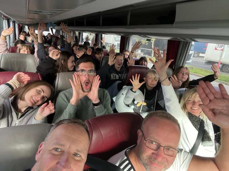 Back on the mainland, things unfortunately did not go as planned. Our bus broke down, and that became a real problem. We had to wait 6.5 hours at a rest stop for two new buses. Luckily, we managed it all quite well and were able to continue. We arrived in Ottendorf-Okrilla much later than planned, at about 2 p.m. All the parents were waiting for us and cheered and filmed as the bus pulled into the parking lot. Finally, after a 23-hour bus ride, we were able to get off and had finally made it.