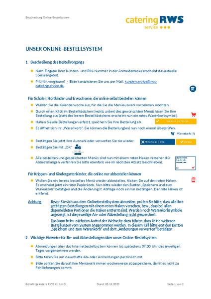 Nachfolgend erhalten Sie alle Infos zur Essensbestellung bei RWS.