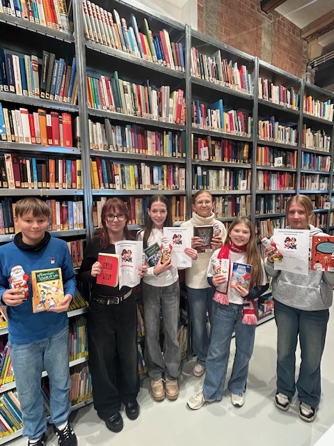 Zum Vorlesewettbewerb der 6. Klassen trafen sich die Jahrgangsbesten am 10.12.2025. Bewertet wurden die Vorstellung eines selbst gewählten Buches mit kurzer Erläuterung und dem Vorlesen besonders interessanter Stellen und das Vorlesen eines unbekannten Textes. Bei beiden Aufgaben kam es auf Betonung, Interpredation und richtigen Sprachgebrauch an. Nach getaner Arbeit gab es für alle eine kleine Stärkung und auf die Sieger warteten Gutscheine von Thalia. Für was wohl? Na klar, für neue Lektüre. Herzlichen Glückwunsch an die Gewinner!