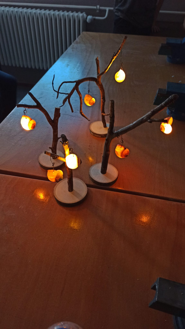 Die Natur bietet uns eigentlich fast alles um schöne Dinge daraus herzustellen, wenn man nur mit offen Augen durch die Welt geht. Aus Stöcken – am liebsten schön krumm und verwachsen- , leeren Schneckenhäusern und einer Baumscheibe lassen sich ganz tolle Lichtspender für die dunkle Jahreszeit kreieren. Nur die kleinen Minilichter, die in den Häuschen sitzen, mussten wir bestellen. Unsere Bäumchen können nun im Wohnzimmer oder Flur für eine vorweihnachtliche Stimmung sorgen, aber auch draußen machen sie eine „gute Figur“!