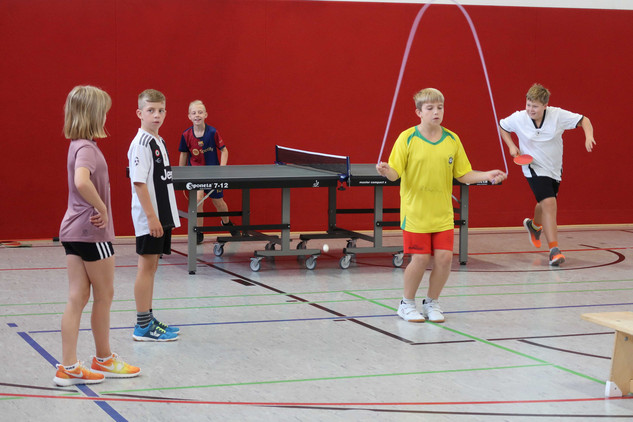 Unser GTA heißt „Beweg mal was!“ und dies wollen wir wörtlich nehmen. Wir konzentrieren uns nicht nur auf eine Sportart, sondern wollen, dass sich die 4 Mädchen und 5 Jungen auf sehr vielfältige Weise sportlich bewegen. Wir stimmen uns jeweils am Anfang des GTA ab, welche Aktivitäten gewünscht sind. Das reicht dann von Ballspielen, Parcoursübungen, Tischtennis, Kletterstange, bis zu