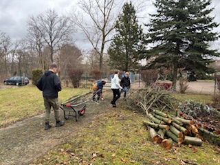 Fleißig, fleißig kann man da nur sagen! Die Mädchen vom GTA Haus, Hof und Garten unter Leitung von Frau Westmeier greifen unserem Hausmeister aktiv mit unter die Arme. Selbst jetzt in der kalten Jahreszeit gibt es genug Arbeiten im Gelände. Nachdem Herr Däbritz fleißig Sträucher in Form gebracht hat, häckseln die Mädchen das angefallene Schnittgut und greifen dabei auch mal beherzt zur Baumschere. Und da wir nichts wegschmeißen, kommen die Holzstücke gleich als Mulchschicht um die Pflanzen an unserer Pyramide. Für soviel Engagement gibt es hier an dieser Stelle auch mal ein großes DANKESCHÖN!