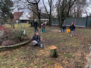 Bei dem Sonnenschein hält es die Mädchen vom GTA Haus, Hof und Garten nicht mehr in den Zimmern. Außerdem locken die vielen Angebote in den Supermärkten, Frühblüher und andere Staudenpflanzen zu kaufen. So haben die fleißigen Helfer im Steingarten vor dem Haupteingang und auf den Hochbeeten auf dem Schulhof Lücken bepflanzt und dann schön angegossen. Natürlich fällt einem da auch das eine oder andere „Beikraut“ auf, das hatte dann aber keine Chance mehr im Beet zu verbleiben. Wenn alles gut läuft und wir pünktlich beliefert werden, wird die nächste größere Aktion das Pflanzen unseres Spalierobstes.