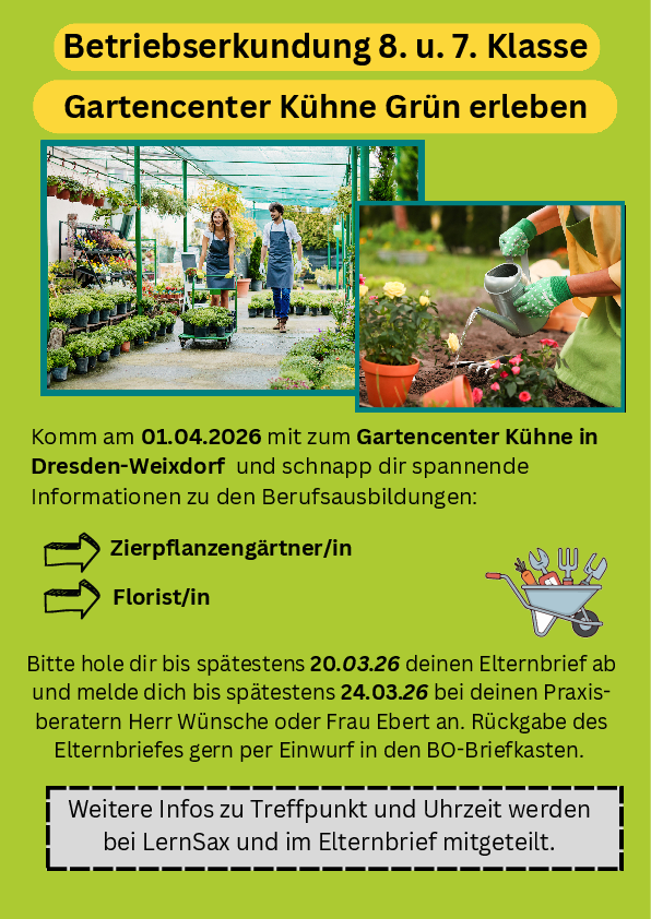 | 01.04.2026 | Betriebserkundung beim Gartencenter Kühne in Weixdorf |
