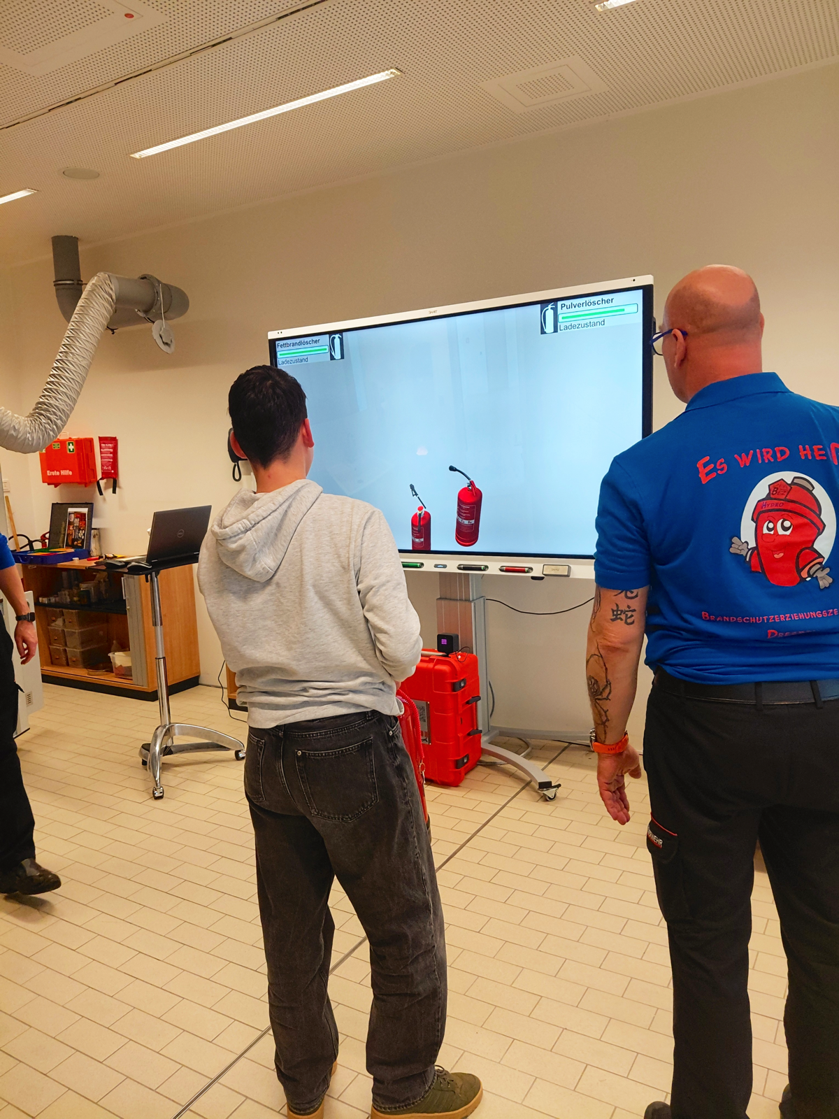 Das theoretische Wissen wurde anschließend durch ein virtuelles Spiel ergänzt, bei dem die Schülerinnen und Schüler selbst einen Brand löschen konnten.