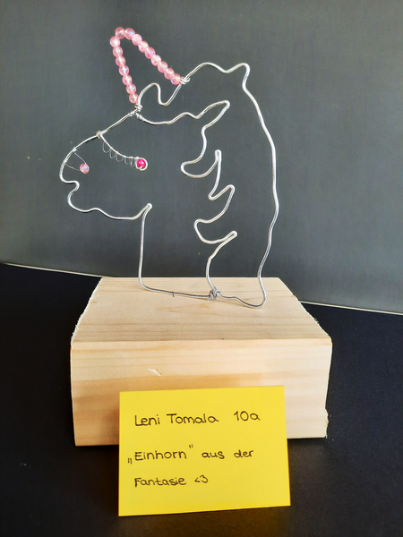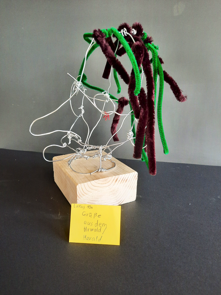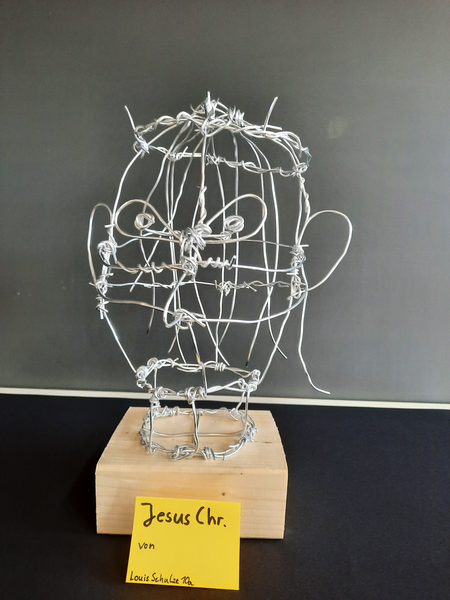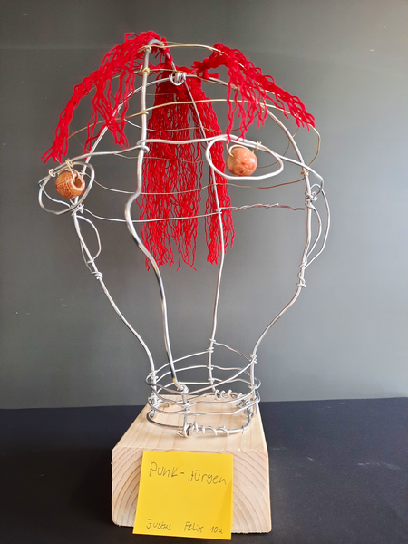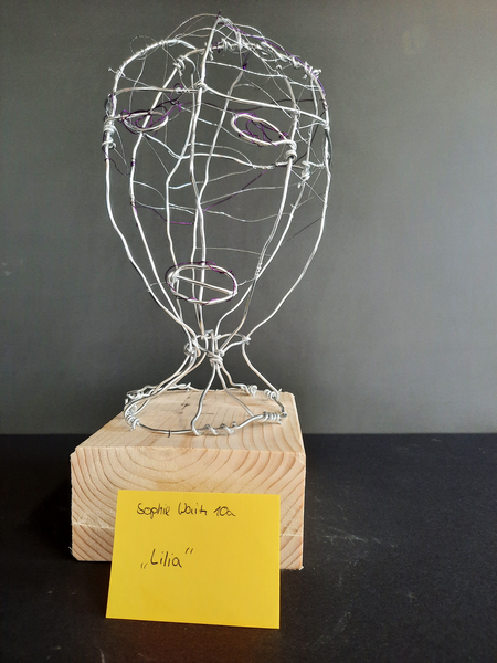 So lautete das Thema für die Kreativaufgabe des Kunstkurses der 10a im Schuljahr 2024/25. Aufgabe war es, dazu eine eigenständige Idee für ein Objektkunstwerk zu entwickeln und dieses praktisch umzusetzen. Als Material stand Draht in verschiedenen Stärken und Farben zur Verfügung, außerdem durften vielfältige weitere Materialien (Perlen, Wolle, Pfeifenputzer, Gips, Farben…) zum Einsatz kommen, die als kreative Elemente den Köpfen ihre ganz eigene Note verleihen sollten.