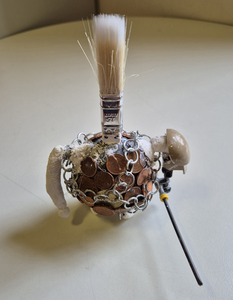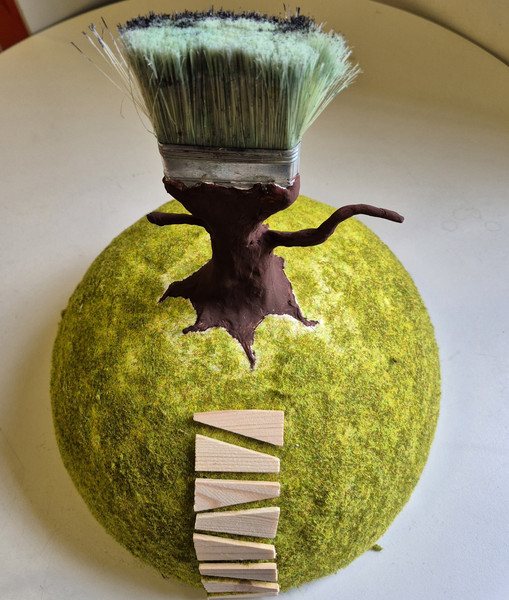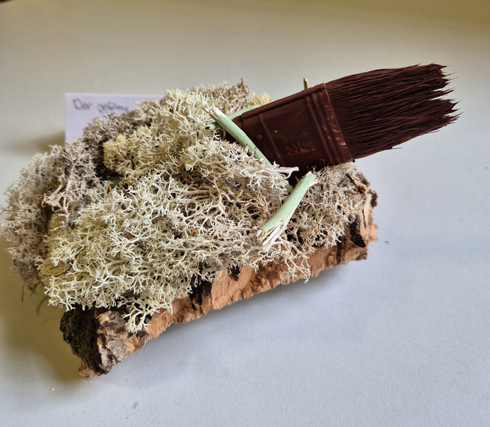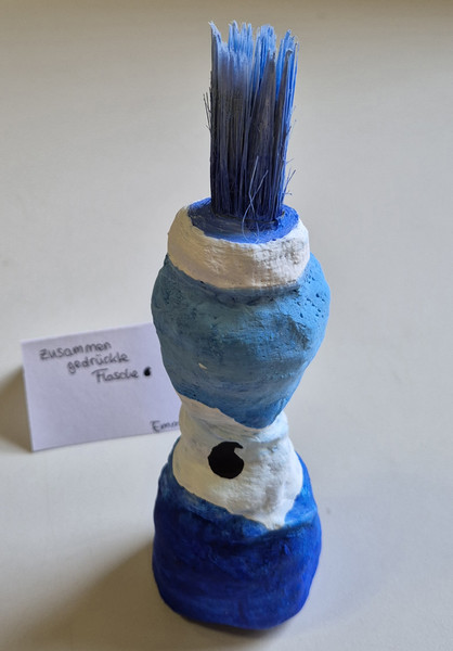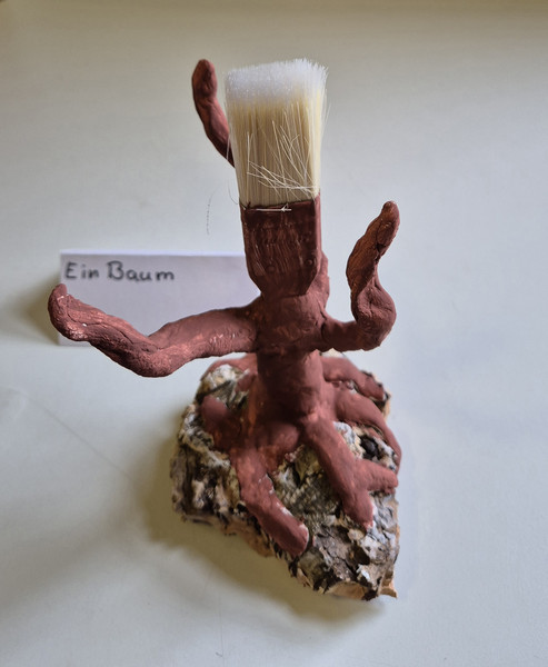 Das diesjährige Kreativprojekt zum Einstieg in den Kunstkurs startete mit einem alten Malerpinsel. Jetzt musste das Gedankenkarussell angeschoben werden. Es sollte ein Objekt entstehen, bei dem der Pinsel in eine andere Umgebung, Form, … gebracht werden sollte. Er durfte auch zerstört werden, nur eine einfache Bemalung war tabu.
