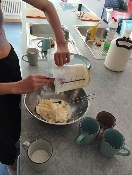 Am Freitag, dem 06.09.2024, war ein Mitarbeiter von Sachsenmilch an unserer Schule zu Gast und gab den Schülerinnen und Schülern der Klassenstufe 8 einen interessanten Einblick in die Vielfalt der beruflichen Möglichkeiten, die bei Sachsenmilch in Leppersdorf geboten werden. Hierbei stand vor allem der Ausbildungsberuf des Milchtechnologen bzw. der Milchtechnologin im Vordergrund. So konnten die Schülerinnen und Schüler einmal selbst erleben und auch ausprobieren, wie frische und leckere Butter ganz einfach aus Sahne selber hergestellt werden kann. Am Ende wurde dann auch die selbst hergestellte Butter gemeinsam verkostet und eine schmatzende und zufriedene Stille breitete sich in der Küche der Oberschule Weixdorf aus.