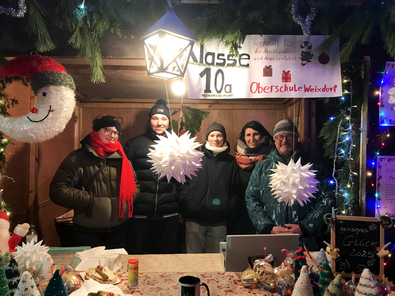 Alle Jahre wieder in bewährter, traditioneller Form beteiligten sich einige Klassen unserer Oberschule am Bubenzauber der Gärtnerei Kühne. Sie erweckten am Samstag sowie am Sonntag im Festgelände der Gärtnerei je 3 Holzhütten mit vorweihnachtlichem Flair! Das Angebot reichte von gebastelten Geschenken, weihnachtlichen Anhängern, Zuckerwatte, Plätzchen, bezaubernden süßen Träumen, Crêpes, Quarkbällchen, Kartoffelchips, diversen Brotaufstrichen, belegten Fladenbrot, Fettschnittchen, diverse selbstgemachte Liköre, Haustoastecken bis hin zu filigranen Kunstwerken! So konnte man die Klassekasse etwas aufbessern für geplante Aktivitäten bzw. den Schulabschluss (Klassenfahrt und Abschlussfeier)! An dieser Stelle ein Dankeschön an den Veranstalter, aber auch den hilfsbereiten Eltern, beteiligten Lehrern und durchhaltenden Kids!