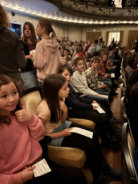 Ein satanisches Theaterstück lockte heute die Klassen 5a und 5b ins Schauspielhaus. Es ging ca. 9 Uhr mit der Linie 7 in die Stadt und nach einer kleinen Frühstückspause direkt in das Theatergebäude. Nach Abgabe der Garderobe nahmen alle ihre Plätze im Parkett ein und waren gespannt auf die Aufführung des Stückes mit dem unaussprechlichen Namen: