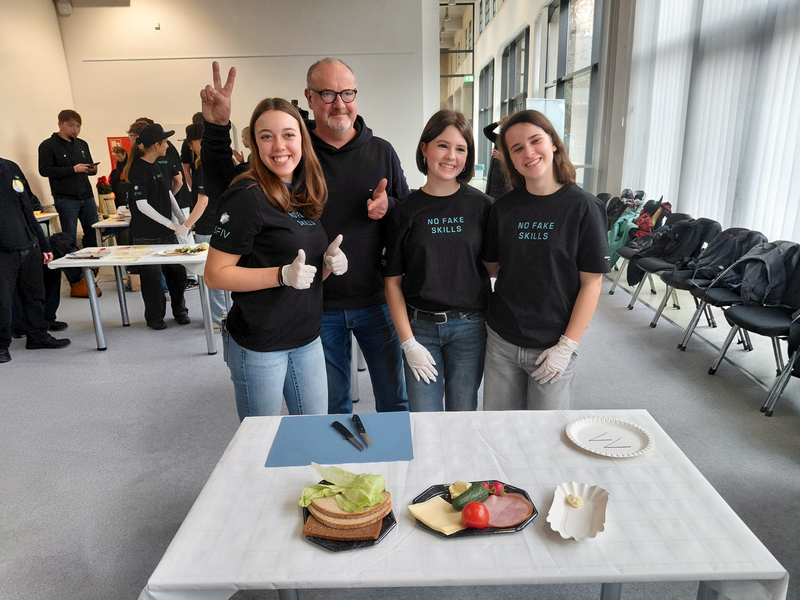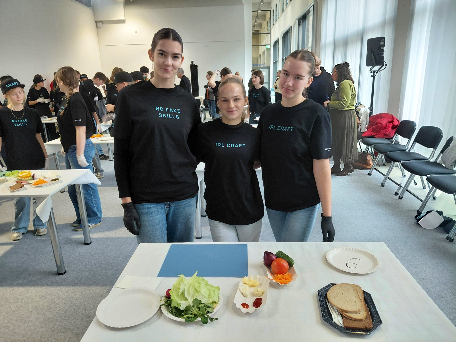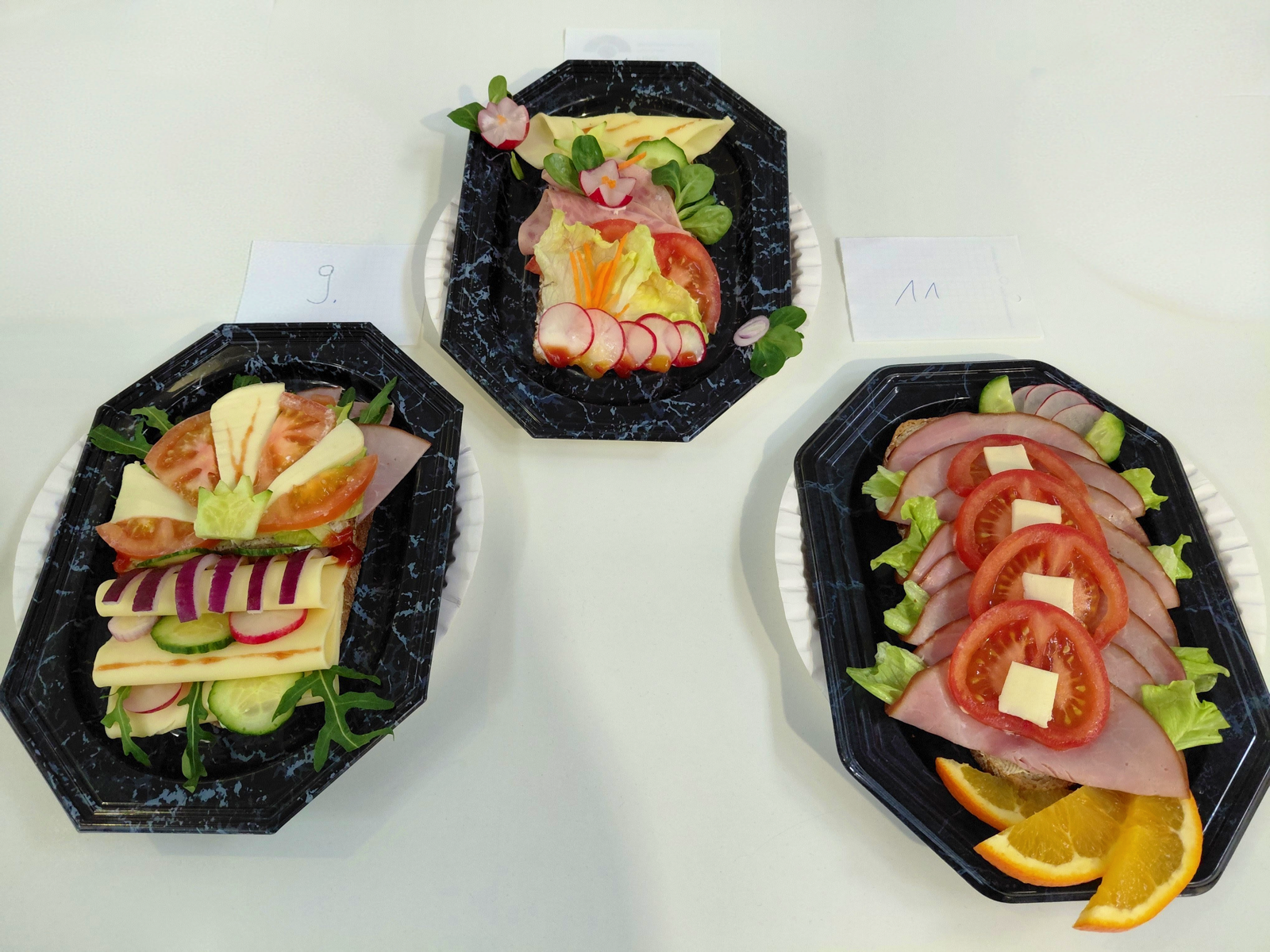 Dann ging es endlich los! Eifrig berieten sich die Teams, entwickelten Ideen und setzten diese mit viel Geschick um. Es wurde geschnitten, gezupft, belegt und liebevoll garniert. Für die Gestaltung hatten die Schülerinnen rund anderthalb Stunden Zeit, doch wer so vertieft arbeitet, merkt kaum, wie schnell die Zeit vergeht. Die Freude am Tun war deutlich spürbar und man sah den Schülerinnen an, dass sie ein gutes Gespür für die Lebensmittel und deren Gestaltung hatten. Am Ende präsentierte jedes Team mehrere fantasievoll belegte Brote und musste sich schließlich für ein Brot entscheiden, das der Jury zur Bewertung übergeben wurde.