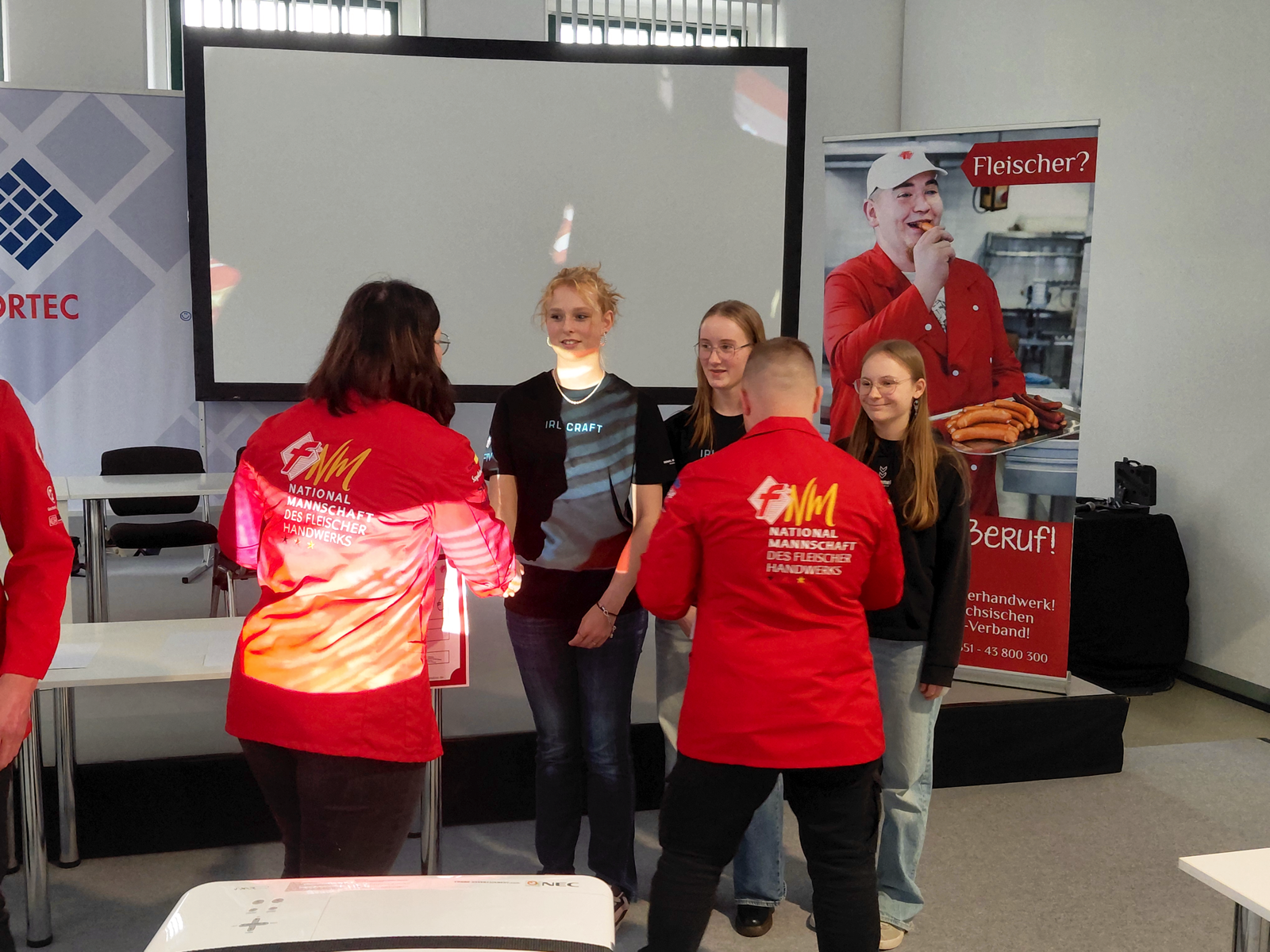 Auch in diesem Jahr nahmen Schülerinnen der Klassenstufe 9 mit viel Engagement und Kreativität am Schüler-Cup der Sächsischen Fleischerinnung teil, der im Rahmen der Bildungsmesse „Karriere Start“ in Dresden ausgetragen wurde.