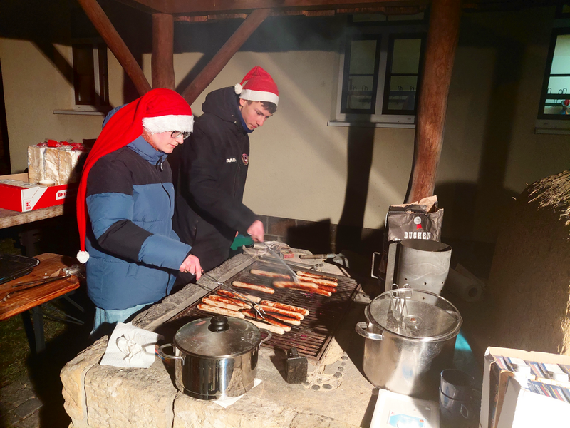 Natürlich war auch für das leibliche Wohl in unserem Café in der Aula, im Schlemmertempel oder in der Grillecke gesorgt, dort schmeckte auch der Kinderpunsch oder Glühwein lecker. Am Lagerfeuer oder im Cafè wurde munter gequasselt, denn viele Kinder, Eltern und ehemalige Schüler kamen auf ein Schwätzchen vorbei.