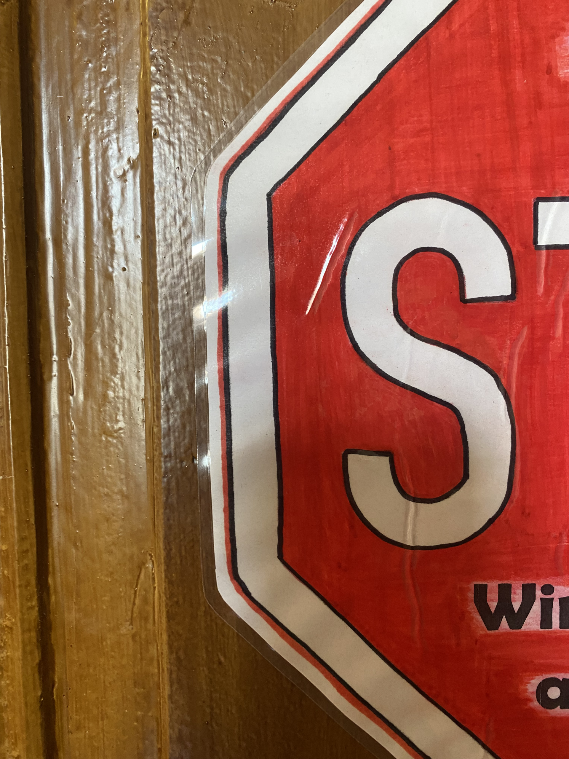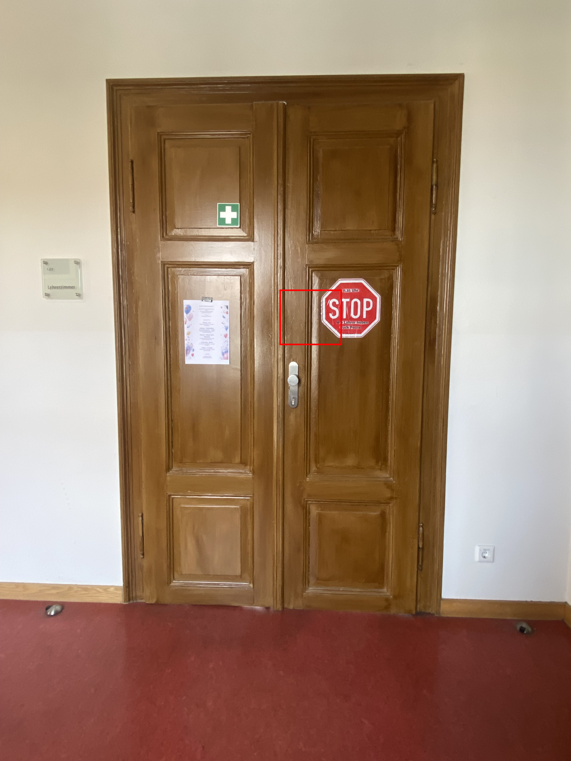Das war ja leicht. Natürlich ist das halbe und auch das ganze Stopp-Schild am Lehrerzimmer im 1. Stock vom Altbau der Oberschule Weixdorf zu sehen.