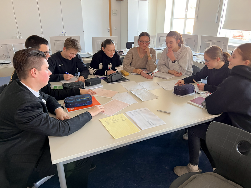 Jede Informatikstunde begann mit einer gemeinsamen Teamsitzung unter der Leitung von Herrn Fischer. Dabei wurden wichtige Aspekte besprochen: der Ablauf der Stunde, die Aufgabenverteilung sowie die Wahl eines Schriftführers. Anschließend setzten die Schüler ihre zuvor erarbeiteten Skizzen Schritt für Schritt am Computer um. Während des gesamten Prozesses arbeiteten sie sowohl eigenständig als auch im Austausch mit ihren Mitschülern, um ein möglichst effizientes und funktionales Ergebnis zu erzielen.