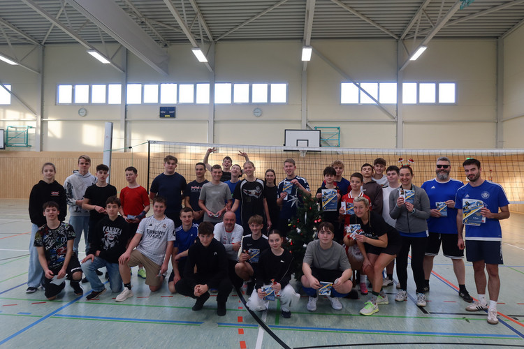 Beim ersten Weihnachts-Volleyballturnier stellten sich freiwillige Schülerinnen und Schüler der Klassenstufen 7 bis 10 einer ganz besonderen Herausforderung: dem Duell gegen das Lehrerteam. Insgesamt traten sechs Schülermannschaften – jeweils aus einer Klassenstufe – in einer weihnachtlich geschmückten Turnhalle im Modus „Jeder gegen jeden“ an.