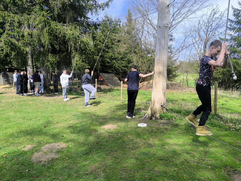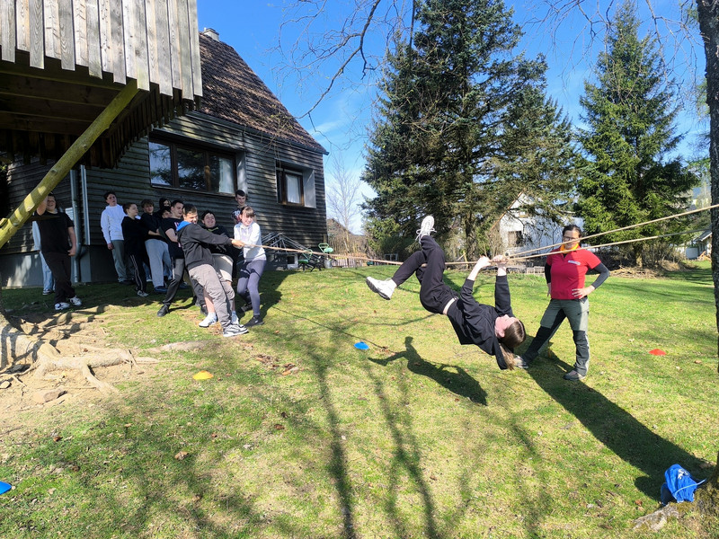 Am zweiten Tag stand ein Teamtraining auf dem Programm. Gemeinsam bereiteten wir eine leckere Suppe über dem Feuer zu und stärkten dabei unseren Teamgeist. Danach ging es in den Niedrigseilgarten. Hier mussten wir im Team verschiedene Hindernisse überwinden, was manchmal eine echte Herausforderung war – aber gerade das machte es so spannend.
