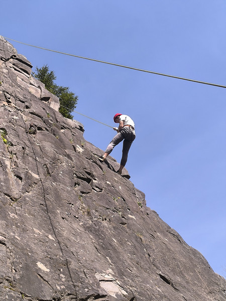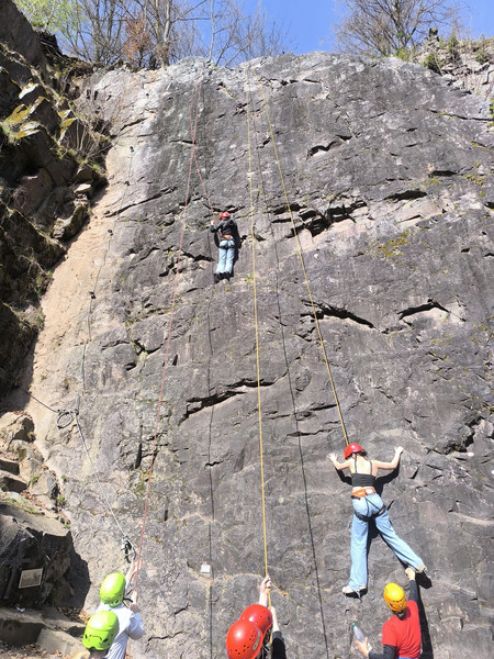 Der dritte Tag war für viele ein echtes Highlight: Felsklettern! Mit Helm und Klettergurt ausgerüstet, wagten wir uns an die steilen Wände. Einige brauchten ein wenig Überwindung, aber am Ende schafften es fast alle nach oben – ein tolles Gefühl!