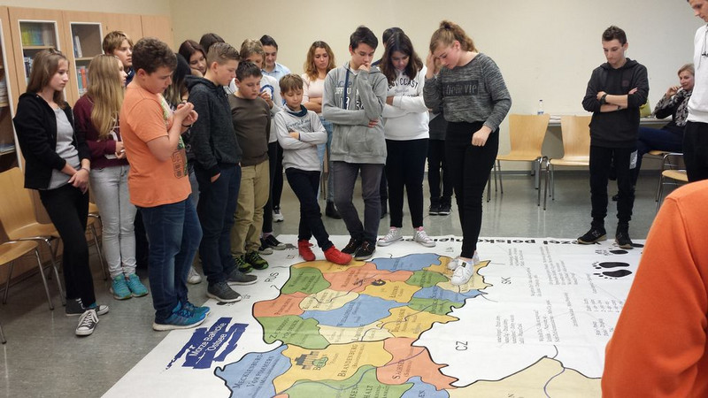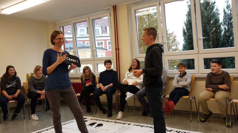 Alle warteten gespannt, als am Dienstag, dem 25.10.2016, das „PolenMobil“ auf den Schulhof der Wittichenauer Oberschule fuhr. Deutschlandweit ist dieses PolenMobil unterwegs, um Schülern die Sprache, Kultur und Geschichte des Nachbarlandes näher zu bringen. Dabei handelt es sich um ein Auto, das mit Lehrmaterialien Lust auf mehr Informationen über das Nachbarland wecken soll. Zu Gast war auch eine kleine Schülergruppe der polnischen Partnerschule aus Lubomierz, die sich aktiv in das Geschehen einbrachte. Mit kurzen Redewendungen wurde das Interesse der Schüler für die polnische Landessprache geweckt. Einige Schüler der Klassenstufe 7 hatten bereits Vorkenntnisse, viele waren auch schon im Urlaub im Nachbarland. Gemeinsam wurde z.B. bei einem Quiz das Wissen um das Nachbarland überprüft. Das Verständnis füreinander und das Wissen übereinander sind wichtige Voraussetzungen für eine gelingende Nachbarschaft – das konnten die deutschen und polnischen Schüler hautnah erleben.