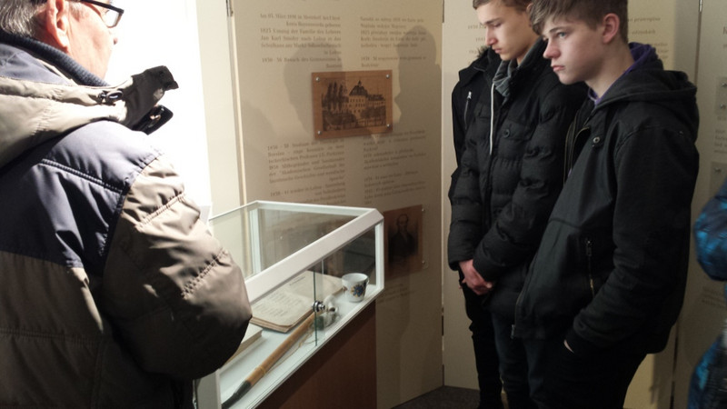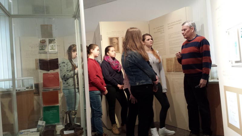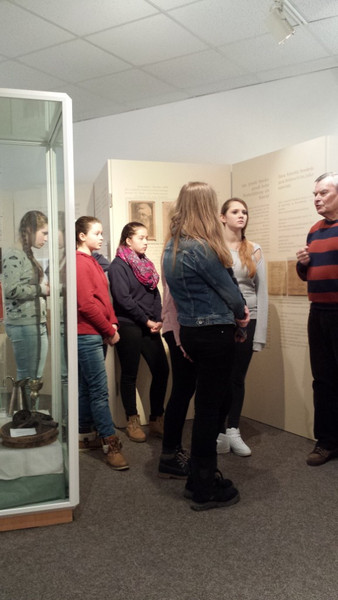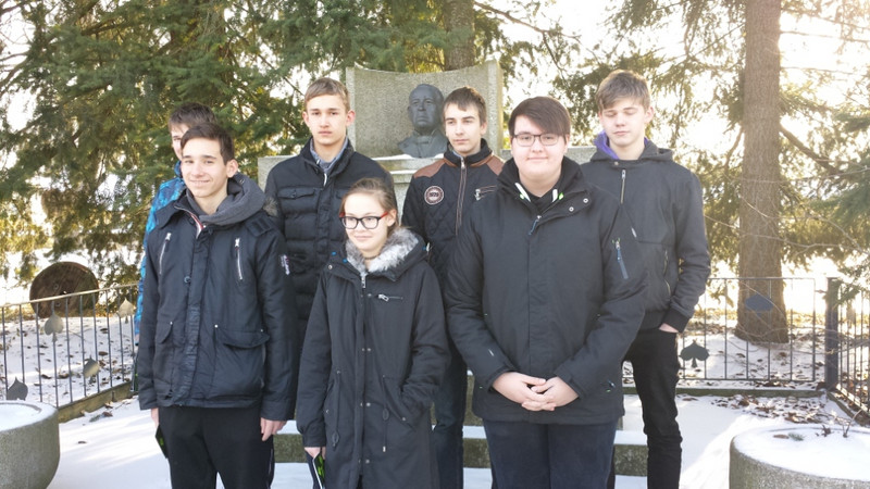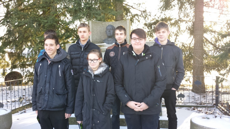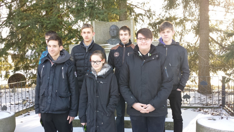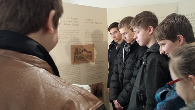 Sorbisch lernen kann man auch außerhalb der Schule. Das konnten die Sorbischschüler der 8. und 9. Klassen der Wittichenauer Oberschule kurz vor den Februarferien in Lohsa erleben. Dort begaben sich die beiden Gruppen an zwei unterschiedlichen Tagen auf die Spuren von Handrij Zejler. Mitglieder des Fördervereins der Begegnungsstätte Zejler-Smoler-Haus Lohsa e.V. begrüßten die Schüler in der „Alten Schule“ am Markt. Von dort ging es zum bekannten Zejler-Denkmal und die wichtige Wirkungsstätte des Dichters – in die Kirche von Lohsa. Diese wurde den Schülern durch Herrn Kirschke in sorbischer Sprache vorgestellt. Hier erfuhren die Schüler auch, dass an diesem Ort 1991 die Stiftung für das Sorbische Volk gegründet wurde. Frau Knothe vom Förderverein las den Schülern eine Fabel Zejlers vor und gemeinsam besuchten alle das Grab hinter der Kirche. Anschließend fand noch eine spannende Führung durch die ständige Ausstellung im Vereinshaus statt, die nicht nur für die Schüler eine Bereicherung darstellte.