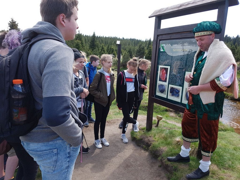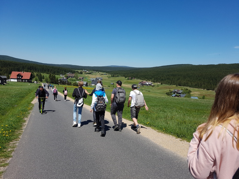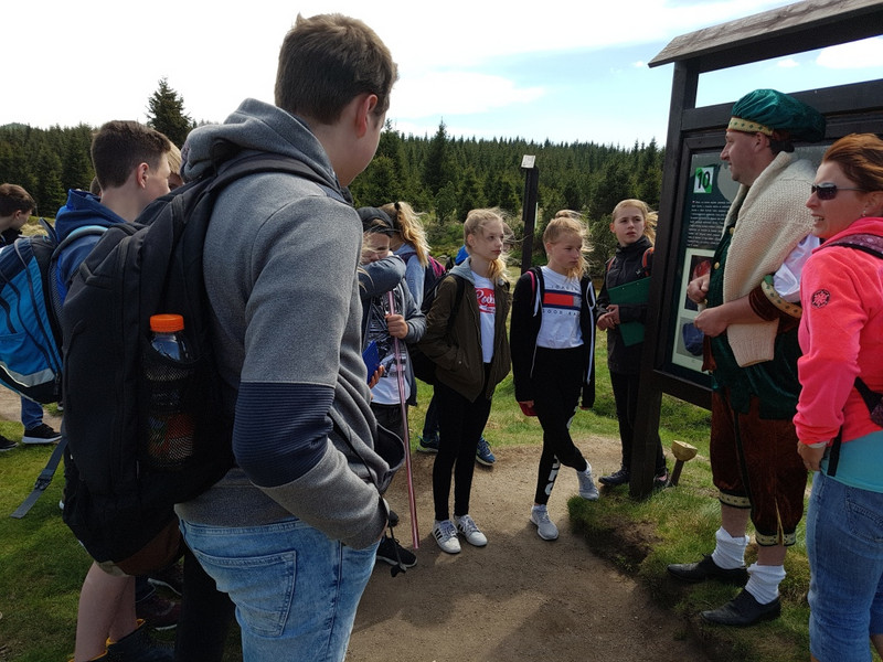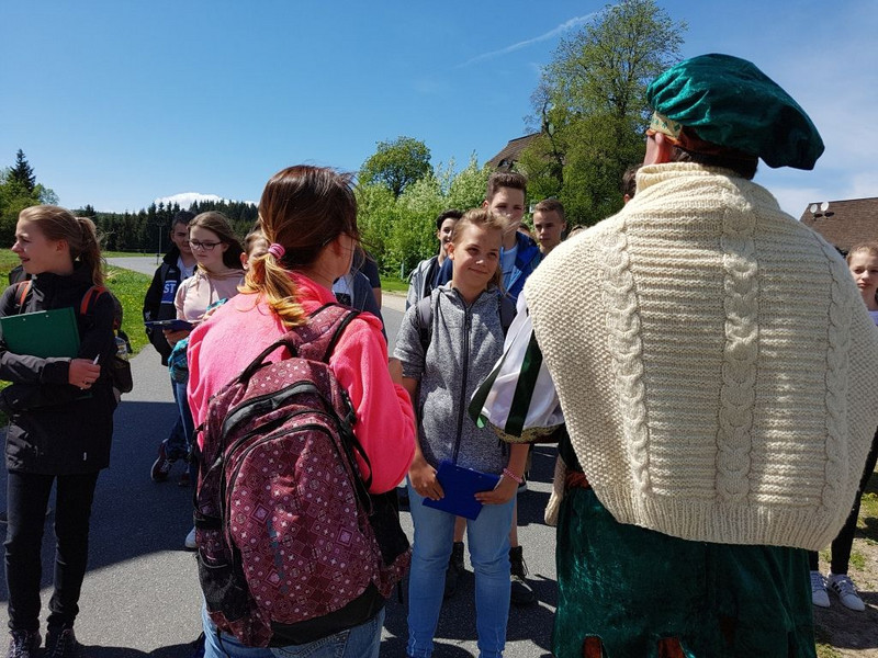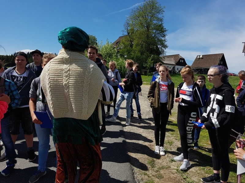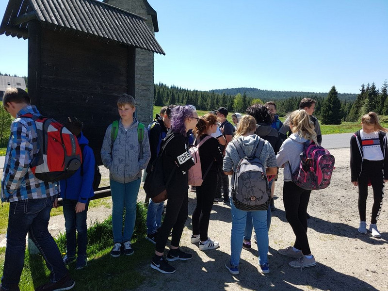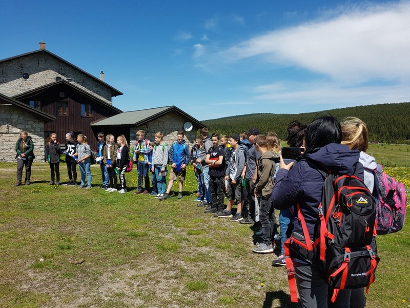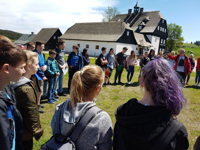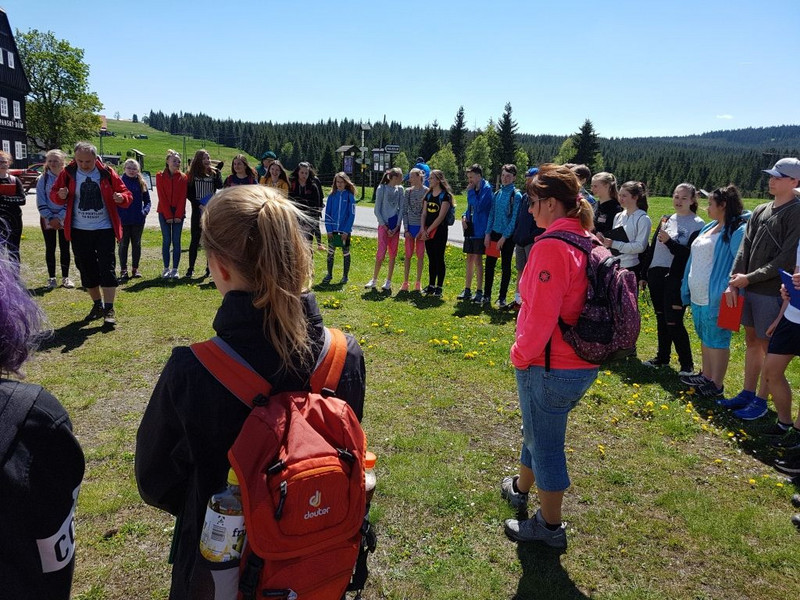 Am Montag, den 14.05.2018 nahmen wir, die Klasse 7b an einem Deutsch-Tschechischen Umweltprojekt teil. Dazu fuhren wir gegen 08:15 Uhr an unserer Schule in Richtung Isergebirge los. Dort trafen wir uns mit Schülern aus einer Schule in Semily und führten gemeinsam das geplante Projekt durch. Am Anfang wurden alle Schüler beider Schulen in gemischte Gruppen eingeteil, damit wir uns so ein wenig kennen lernen konnten. Danach wanderten wir in Jizerka und lernten so etwas von der Umgebung und der Geschichte dieser Gegend kennen. Wir erfuhren, welche Gewerke notwenig waren, damit die dort lebende Bevölkerung existieren konnte. Nach einem wohlschmeckenden Mittagessen ging es dann wieder ab in Richtung Heimat.
