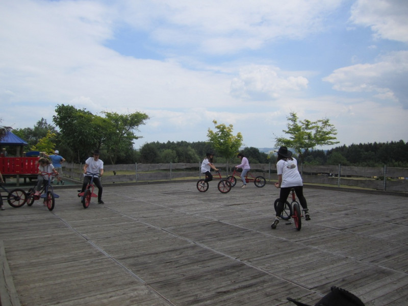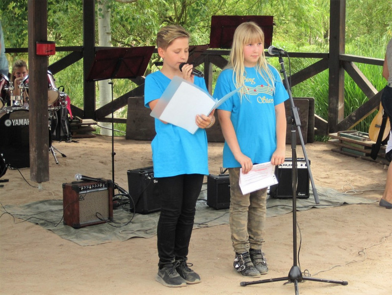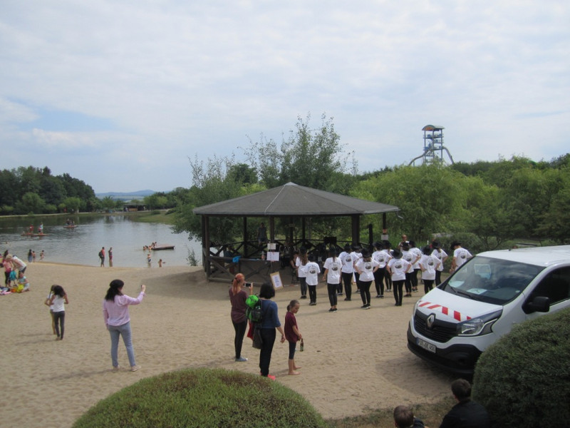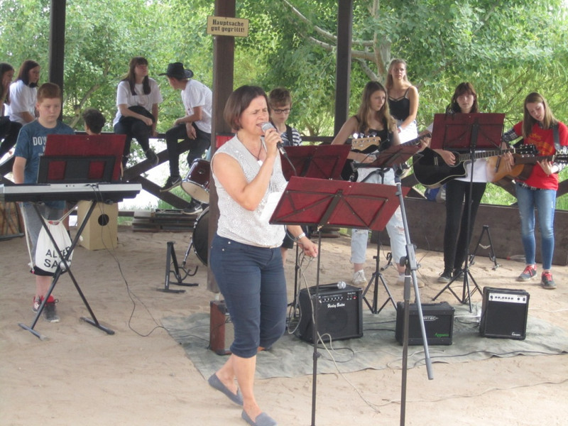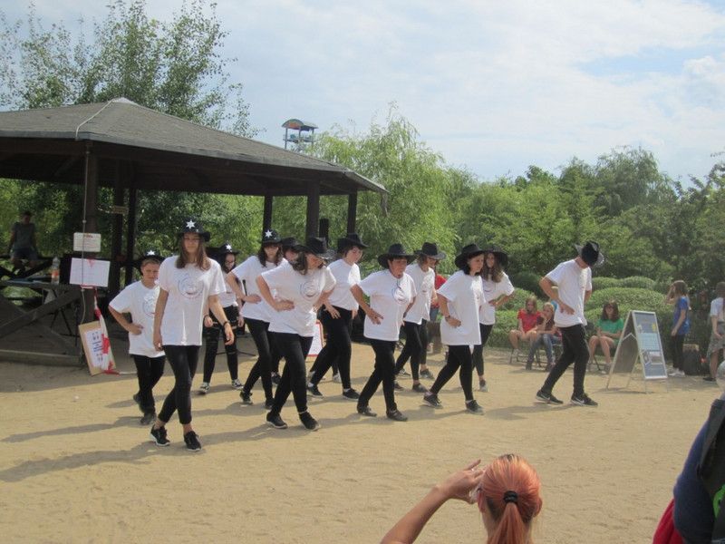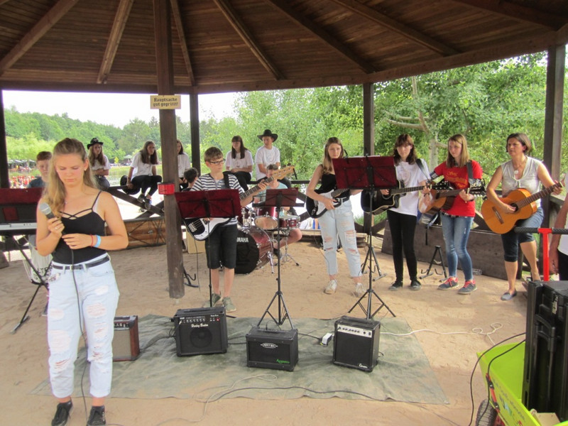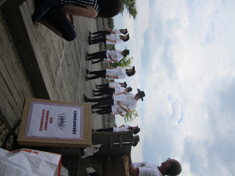 Die Vielfalt war sehr groß, Schulorchester, große Chöre von Musikgymnasien, Tänzer aus Grund - und Förderschulen, die "Swingenden Teufel " und vieles mehr. Wir staunten nicht schlecht, was so manches Ensemble leistete. Da konnte man sich einiges abgucken. Dann ging es weiter Richtung Sonnenlandpark. Hier gab es mehrere Auftrittsorte, an denen sich die Ensembles mit ihren Programmen der Öffentlichkeit präsentierten. Unser Auftrittsort war an einem Pavillon am Strand. An dieser Stelle gab es leider nicht so viel Publikum, aber wir hatten trotzdem unseren Spaß. Leon und Lara führten durch unser Programm, welches wir abwechslungsreich mit Chor, Band und Linedance gestalteten. Zuvor zeigten unsere "Linedancers" zusammen mit Frau Schöne ihre Tänze auch noch an einer anderen Stelle. Gerne hätten wir auch noch mehr von den anderen Ensembles gesehen, aber durch die Weitläufigkeit des Geländes mit mehreren "Bühnen" und knapp bemessener Zeit war das kaum möglich. Natürlich gab es auch etwas Freizeit, in der wir die Angebote des Erlebnisparks nutzen konnten.