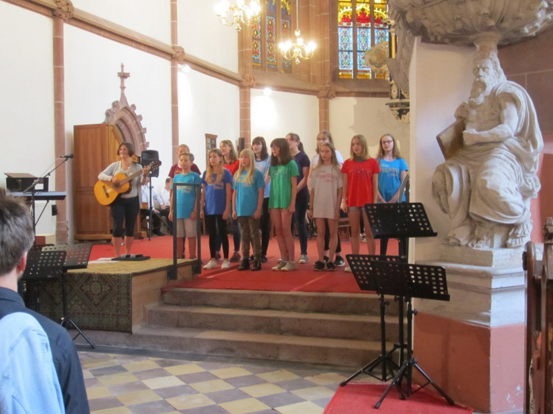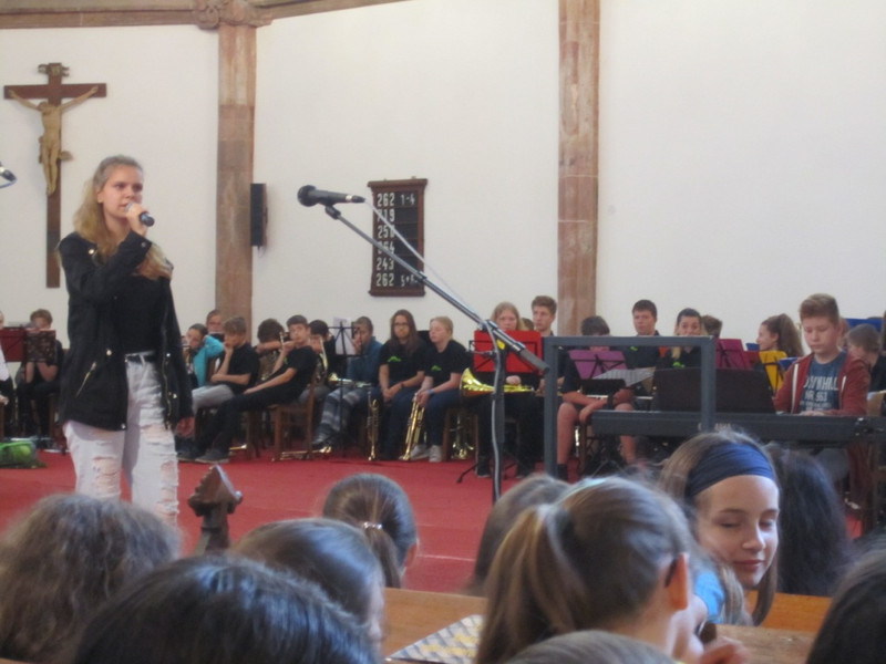 Wir waren dabei und vertraten unsere Oberschule sogar mit drei Ensembles, den "Singstars", der Schulband und der Linedancegruppe!! Mit Spannung erwarteten wir diesen Tag. Zuvor wurde natürlich fleißig im Rahmen unseres Ganztagsangebotes und im Neigungskurs Linedance geprobt. Am Samstag dem 16. 06. war es endlich soweit. Früh um 8 Uhr starteten wir mit einem Sonderbus Richtung Chemnitz. In der Stadtkirche Mittweida begann das Treffen mit einer Eröffnungsveranstaltung, bei der sich fast alle Ensemble mit einem kleinen Beitrag kurz vorstellten.
