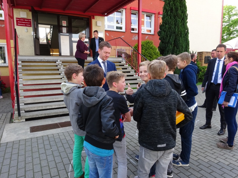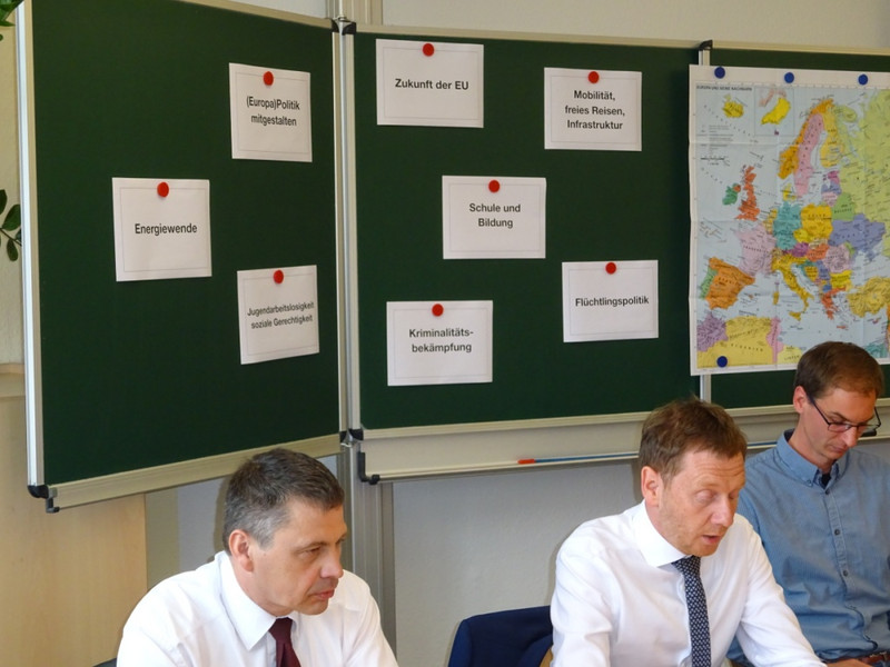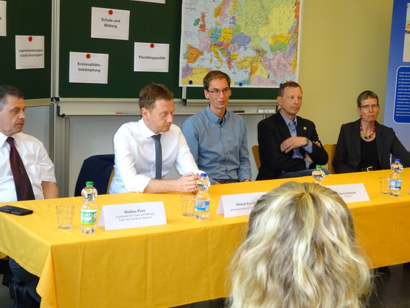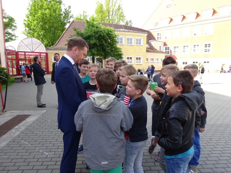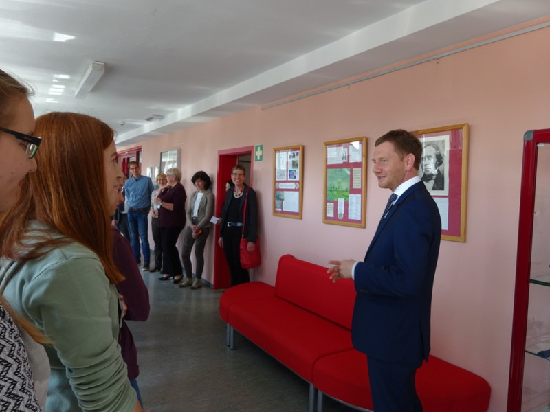 Unter diesem Motto fand am 04.05.2018 eine Gesprächsrunde mit Herrn Michael Kretschmer, dem Ministerpräsidenten des Freistaates Sachsen, Herrn Mathias Peter, Landesamt für Schule und Bildung, Leiter des Standortes Bautzen, Herrn Markus Posch, Bürgermeister der Stadt Wittichenau und Frau Cornelia Nasner, Vorsitzende des Partnerschaftskomitees Bad Honnef – Wittichenau e.V. statt.
