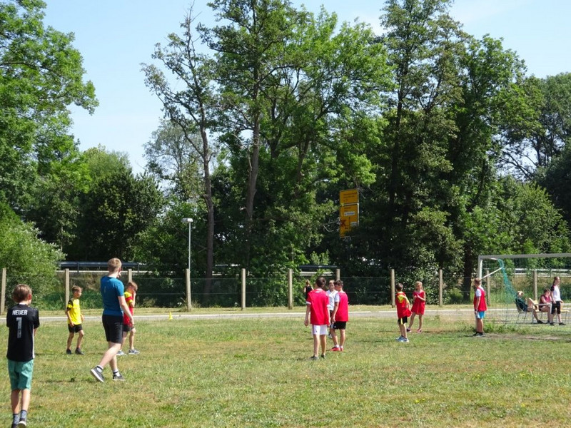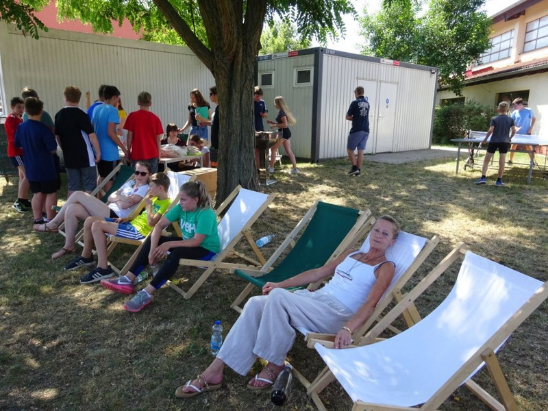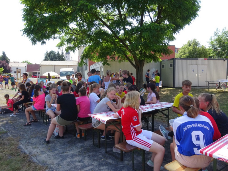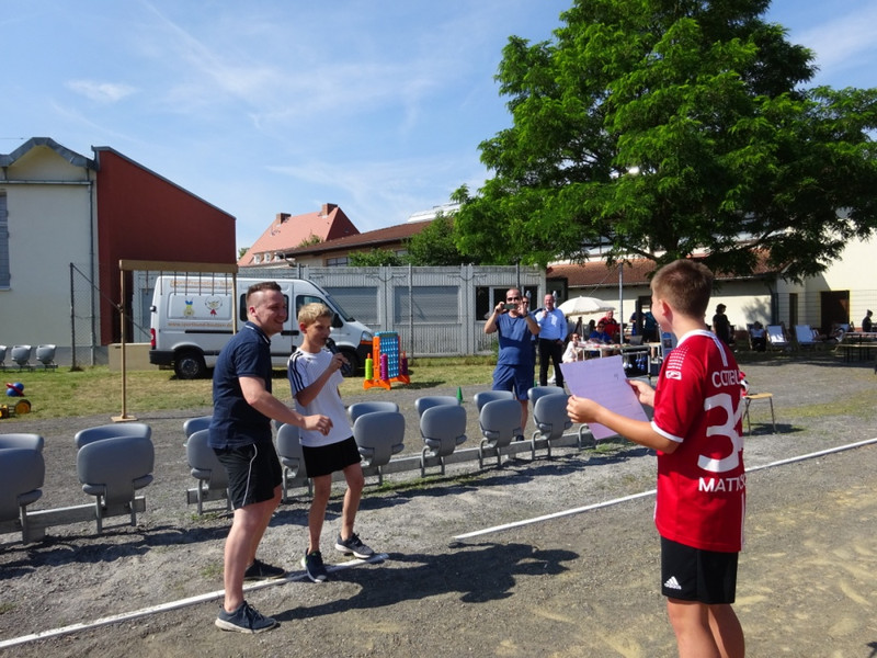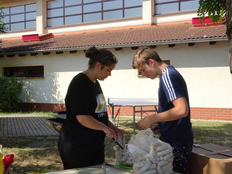 Natürlich war auch für das leibliche Wohl gesorgt. Die Schülerinnen und Schüler der Klasse 9b zeigten viel Einsatz sowohl bei der Vorbereitung der Festveranstaltung als auch während dessen. Egal, ob als Schiedsrichter, Stationsleiter oder Grillmeister, sie trugen zum Gelingen mit bei.