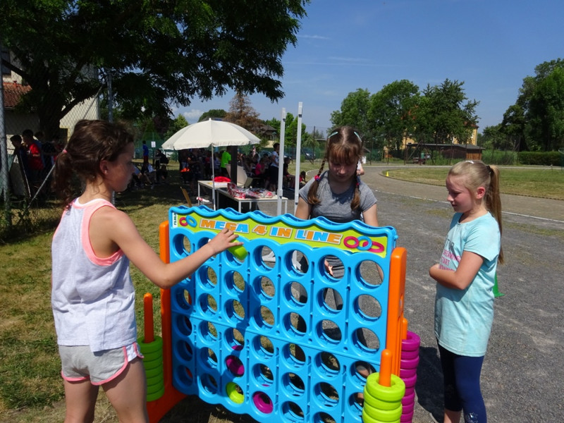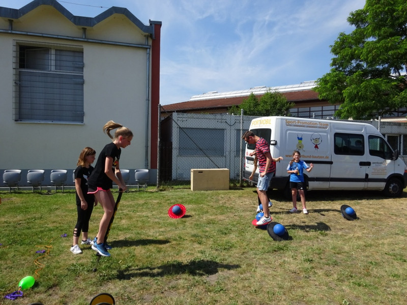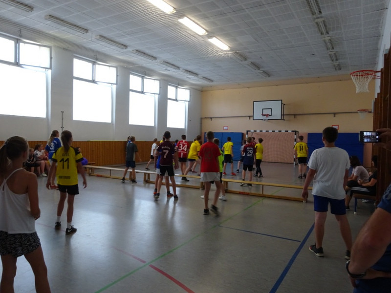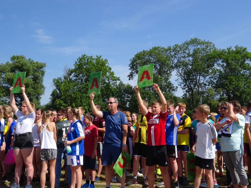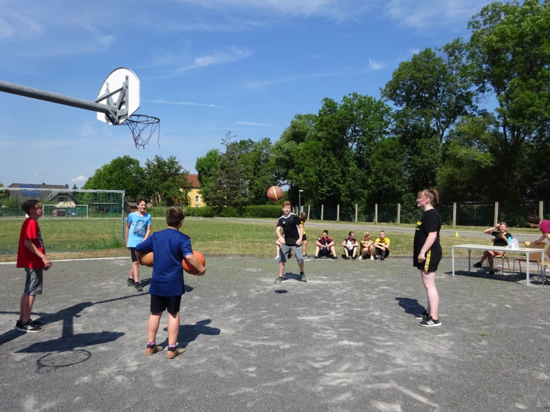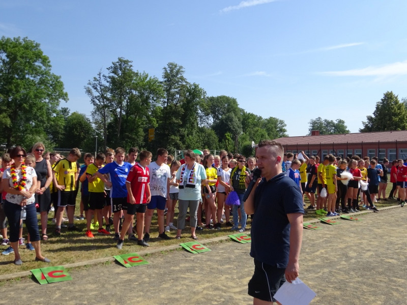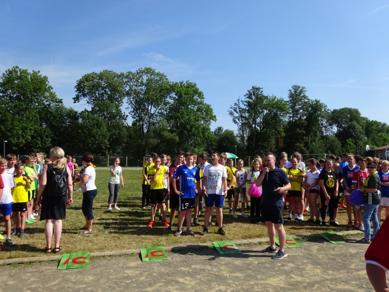 Nach einer kleinen Festrede, bei der die Sponsoren gewürdigt wurden, ging erst mal mit einem Quiz los, bei dem die Schüler im Klassenverband auf die gestellten Fragen schnell antworten mussten. Danach wurde es sportlich. In verschiedenen Spielrunden kämpften die Klassenstufen gegeneinander und gaben ihr Bestes. Zum Schluss wurden an Hand der Ergebnisse die Jahrgangssieger ermittelt und prämiert.