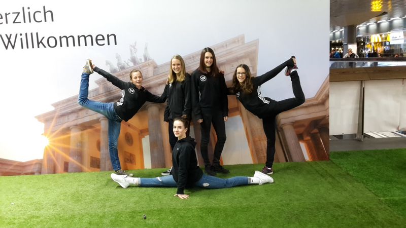 Ein anstrengender, aber erfolgreicher Tag liegt hinter uns. Am späten Vormittag machten wir uns auf den Weg in die Turnhalle nach Berlin Schöneberg. Anna-Lena, Lina, Zoe, Franziska und Katharina turnten einen tollen Wettkampf und wurden mit Platz 7 beste ostdeutsche Schule.