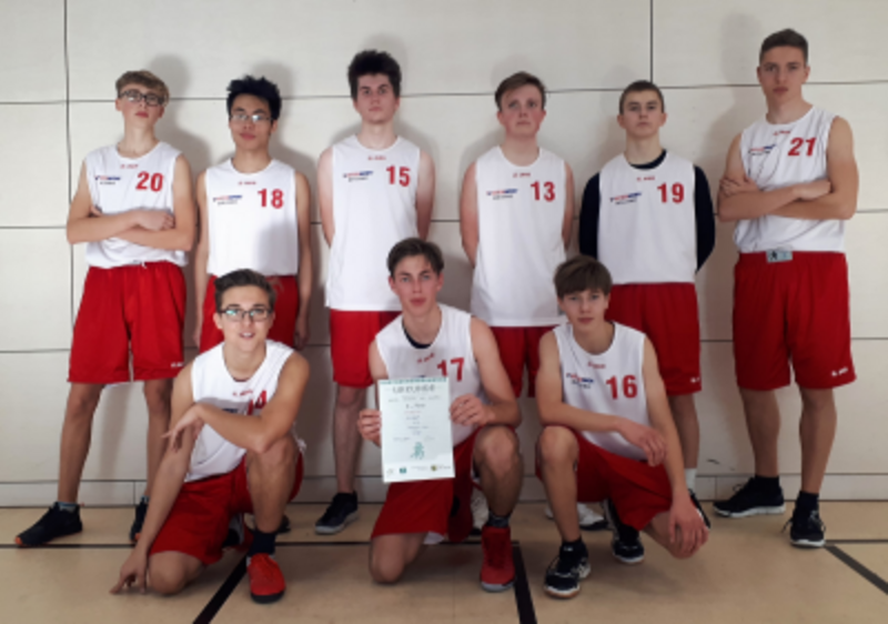 Die Schulauswahl der Jungen mit Moritz Heeger (11/3), Kilian Winterfeld (10/1), Leon Bracklow, Hugo Büttner, Huu An Nguyen, Ole Raubach (alle 10/3), Erik Wenke, Jannik Wohlgemuth (beide 9/2) und Vincent Bachmann (9/3) kämpfte mit vier weiteren Teams um die Stadtmeisterschaft. Alle gegnerischen Mannschaften hatten mehrere aktive Basketballer in ihren Reihen, so dass wir als Außenseiter in das Turnier gingen. Im ersten Spiel gegen das Gymnasium Bühlau unterliefen unserer Mannschaft noch viele Stellungs- und Abspielfehler, kamen wir mit der ungewöhnlichen Raumdeckung des Gegners überhaupt nicht zurecht und verloren somit deutlich. Im zweiten Spiel gegen den späteren Turniersieger vom Gymnasium Bürgerwiese steigerten sich unsere Jungs erheblich. Konsequenter in der Verteidigung, clever im Angriff konnte sich der Favorit erst in der Schlussphase durchsetzen. Im dritten Spiel traf unser Team mit dem Gymnasium Bertolt Brecht auf das spielstärkste Team und zeigte seine beste Turnierleistung. Zur Halbzeit führten wir dank einer hervorragenden Abwehrarbeit völlig verdient mit 7:2. Nach der Halbzeitpause verließ uns allerdings das Wurfglück und die BB konnte in Führung gehen. Mit großem Kampfgeist erzielten wir wieder den Ausgleich und es ging in die zweiminütige Verlängerung. Gleich zu Beginn konnte der Gastgeber einen Angriff erfolgreich abschließen. Doch unsere Jungs hielten stark dagegen und erarbeiteten sich noch einige erfolgsversprechende Szenen, doch der Ball wollte einfach nicht in den Korb. Im letzten Spiel knüpften unsere Jungs noch einmal an diese gute Leistung an, setzten das Team der Hoga von Beginn an unter Druck und verteidigten bis zum Schluss die Führung. So belegten sie am Ende einen achtbaren vierten Platz.