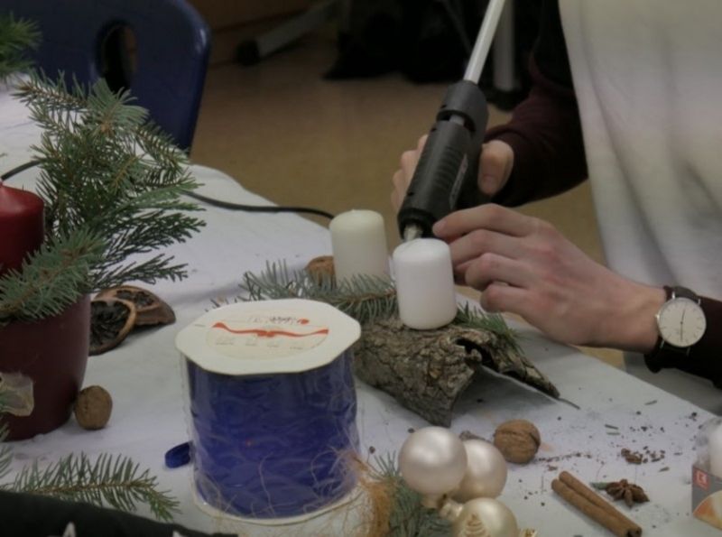 ...Mit diesem und weiteren bekannten Weihnachtsliedern wurde der 8. Weihnachtsmarkt an unserer Schule von Chormitgliedern der 12. Klasse feierlich eröffnet, bei denen sicher der eine oder andere Zuhörer leise für sich mitsummte. Lass uns doch einmal gemeinsam einen kleinen Rundgang durch die weihnachtlich geschmückte Schule machen! Beginnen wir in den Kunstzimmern: Hier besteht die Möglichkeit, mit Naturmaterialien verschiedenster Art weihnachtliche Dekoration zu kreieren. Es duftet nach Tannengrün und Zimt. Um dieses weihnachtliche Bouquet nicht nur für ein paar Minuten schnuppern zu können, besteht die Möglichkeit, dieses in kleinen selbstgefertigten Duftsäckchen „einzufangen“. Nach Vollendung unserer Kreationen verspüren wir einen Appetit auf etwas Herzhaftes. Also verlassen wir die Schule und betreten den Schulhof, auf welchem unserem Appetit mit Bratwürsten vom Grill schnell Abhilfe geschaffen wird. Wir atmen die kalte frische Luft ein... Ob es wohl dieses Jahr zu Weihnachten endlich einmal wieder schneien wird? Gedankenversunken bemerken wir plötzlich, dass unsere Füße ziemlich kalt geworden sind, so dass wir schnell wieder in das Schulgebäude zurückkehren und uns erst einmal mit einem Kinderpunsch, Kaffee oder gar Glühwein etwas aufwärmen. Nur schwer können wir uns dem Duft von Kuchen, Gebäck und Waffeln entziehen, welcher uns in die Nase dringt. Aber ganz ehrlich: Im Winter braucht man sowieso keine Bikini-Figur, warum also dem Magen eine kleine Süßspeise verwehren?