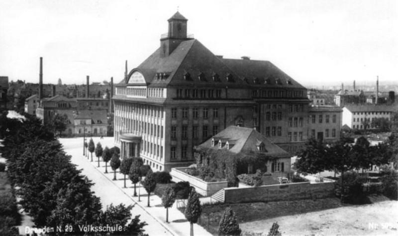 Unser Schulstandort verdankt seine Existenz dem rasanten Ausbau der Industrie am Anfang des 20. Jahrhunderts im nördlichen Stadtgebiet Dresdens. Rings um Pieschen entstanden Fabriken. Solche Unternehmen waren u.a. die "Eschebach-Werke für Metallwaren und Möbel" (im Jahr 1900: 2000 Beschäftigte), Deutschlands größte Waffelfabrik der Gebrüder Hörmann oder die Näh- und Schreibmaschinenfabrik von Clemens Müller an der Großenhainer Straße 99 mit rund 1000 Arbeitern im Jahr 1900.