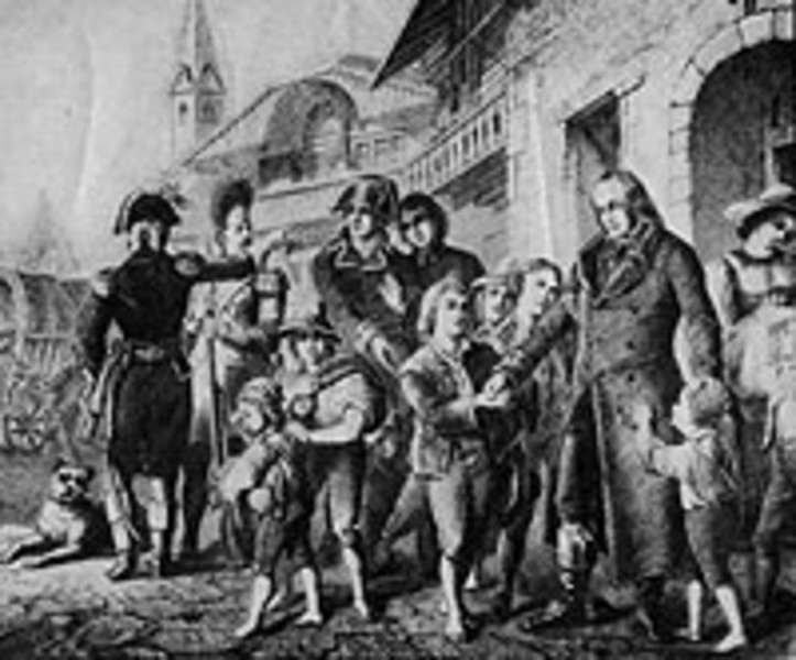 Als junger Mann war der Schweizer Pestalozzi, Sohn eines Arztes, mit seiner Familie aufs Land gezogen. Dort aber musste er nur zu schnell erkennen, dass seinem Ideal von einer natürlichen, harmonischen Entwicklung des Menschen die gesellschaftlichen Verhältnisse entgegenstanden. Viele bäuerliche Familien vermochten sich angesichts der feudalen Lasten und der sinkenden Lebensmittelpreise nicht mehr zu ernähren. Ihre Armut erregte Pestalozzis Mitleid. Sie weckte in ihm den Wunsch, zumindest den Kindern zu helfen. Einige von ihnen nahm er auf. Er verband den Unterricht für sie mit landwirtschaftlicher und heimindustrieller Arbeit, legte darin sein ganzes Vermögen an. Schließlich war er selbst so arm wie die Ärmsten.