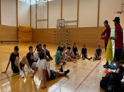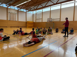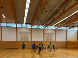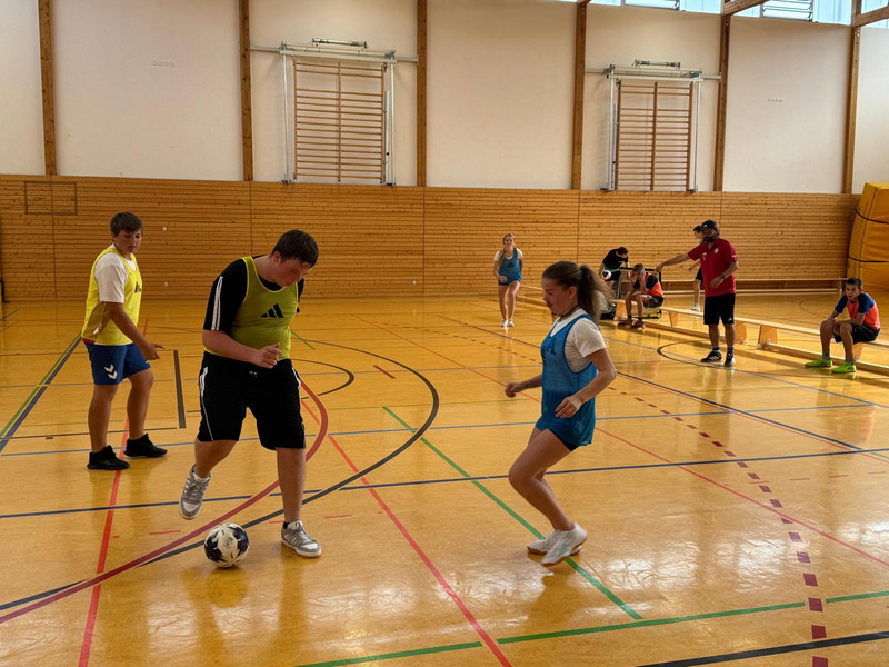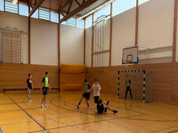Mit lustigen Ballspielen in der Berufsschulturnhalle wurde uns Schulfußball näher gebracht.