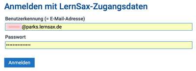 Die Benutzerkennung ( = E-Mail-Adresse) ist ab sofort über „@parks.lernsax.de“ erreichbar.