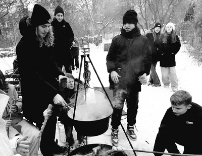 Die Duke- und Abenteuer AG der Rosa-Parks-Schule und der Ihmelsstrassenschule trafen sich zum Winterpunsch im Schulgarten. Bei Schnee, Feuer, Brezelteig und Kirschpunsch wurde sich über die kommenden Expeditionen in diesem Jahr 2026 ausgetauscht. In vier Wochen sind wir zum Feuerspucken in die Ihmelsstrasse geladen. Darauf freuen wir uns schon!