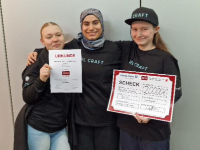 Für das Team Laila (9a), Seyma (9c) und Melissa (9c) hieß es dann zur Preisverleihung; der 3. Platz geht an das Mädchenteam der Rosa-Parks-Schule Leipzig. Dazu gab es eine Urkunde und eine Prämie von 200,00 €.