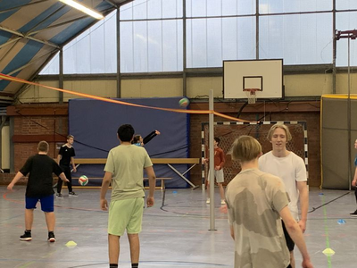 Endlich war 2022 auch wieder Weihnachtsmarkt und damit fand in diesem Rahmen unser traditionelles Weihnachts-Volleyballturnier statt. In der Turnhalle spielten und kämpfen fünf Teams aus den 8., 9. und 10. Klassen in sehr sportlicher und fairer Atmosphäre um die Punkte. Alle Teams spielten trotz unterschiedlichen Erfahrungsgrades sehr einsatzstark und es gab viele gute und/oder spannende Spiele. Den Sieg konnte das erfahrenste Team „Kurdistan“ aus der 10a erringen, die damit ihren Erfolg vom Herbstturnier wiederholen konnten. Zweiter wurde diesmal das Team der „Volleyboys“ (vorrangig Schüler der 9b), die durch ein 20 zu 19 im direkten Spiel gegeneinander das Team von „Neko“ (durch Krankheit ein reines Mädchenteam) knapp auf den 3. Platz verwiesen.
