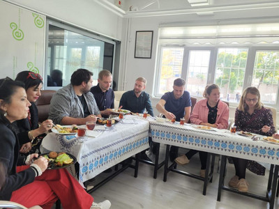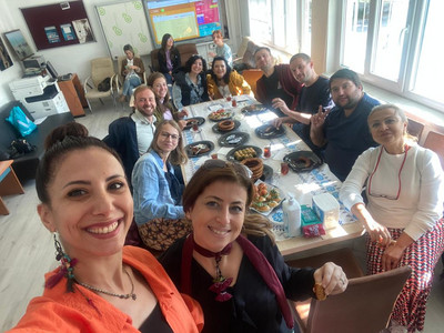 Im Oktober 2022 startet eine Delegation von Lehrkräften und Mitarbeitenden in die türkische Hauptstadt Ankara. Überaus freundlich wurden wir am ersten Tag in der Gastschule von Schulleitung und dem gesamten Kollegium empfangen. Nach einer ersten Schulhausführung gab es im Lehrezimmer ein großes Wilkommens- Büfett mit klassischen türkischen Speisen und anatolischer Live-Musik. Schließlich ließen auch wir uns zu traditionellen Tänzen hinreißen. Was für ein gelungener Auftakt (auch wenn nicht jeder Tanzschritt bei uns saß :).