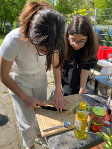 Besonders fasziniert hat uns die griechische Küche. Beim gemeinsamen Kochen mit unseren Gastgebern haben wir nicht nur köstliche Gerichte zubereitet, sondern auch viel über die Bedeutung von Essen in der griechischen Kultur gelernt. Man schmeckt die besondere Vielfalt und wir konnten einige Rezepte sogar austauschen! Einige Wochen nach dem Austausch haben wir uns dann noch einmal getroffen und gemeinsam ein Essen zubereitet. Wir haben aber nicht nur gekocht, sondern gemeinsam im Schulgarten unserer Gastschule gearbeitet und neue Pflanzen eingepflanzt. Nun hoffen wir nur noch, dass unsere Arbeit „Früchte trägt“.