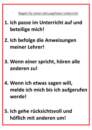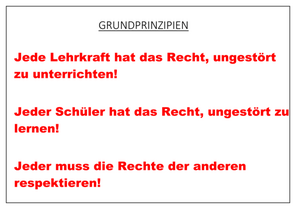 Im Unterricht gibt es 2 klare, schriftliche Ermahnungen gegenüber dem störenden Kind. Beim 3. Verstoß erfolgt die Zuweisung in den Trainingsraum.