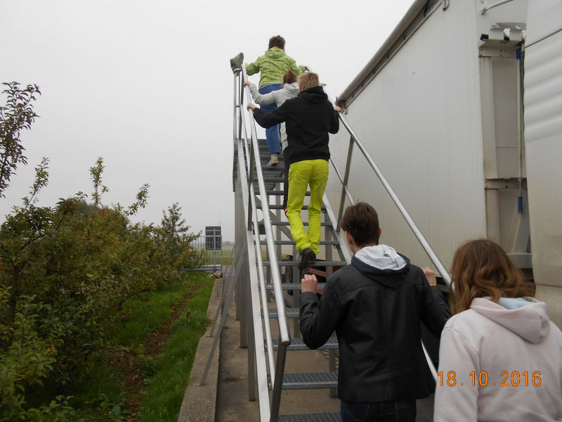 Gut vorbereitet freuten wir uns auf den Besuch , denn wir waren neugierig, wo und wie die Äpfel geerntet werden, wie man sie transportiert und verarbeitet.