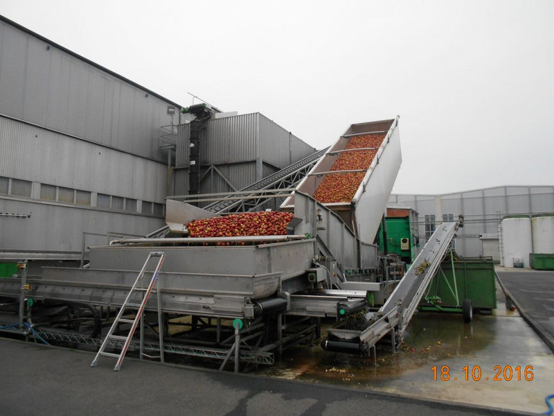 Nach der Entladung werden die Äpfel über Bänder in die Produktionshalle transportiert.