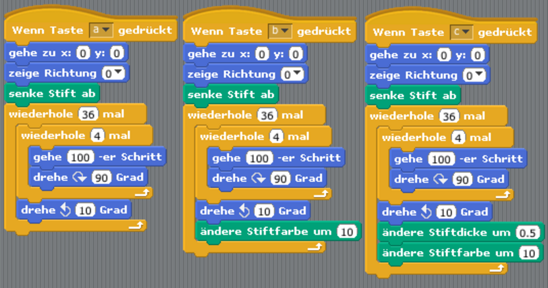 Programme zum Zeichnen einer Rosette aus Quadraten mit Farb- und Linieneinstellungen