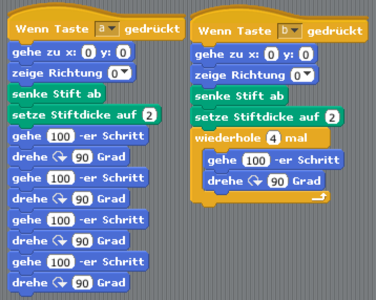 Als Sprite für das Zeichen mit scratch-LOGO kommt der Stift zum Einsatz (siehe hier).
