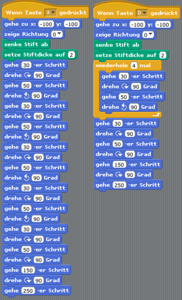 Programme zum Zeichnen einer Treppe als Sequenz und mit Wiederholeschleife