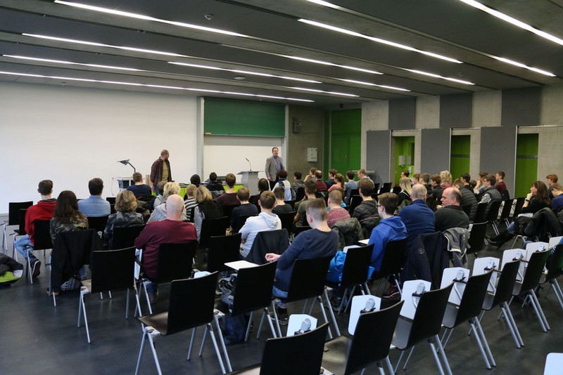 Nach der Eröffnung und der Begrüßung durch Dr. Rohland von der Professur Didaktik der Informatik gab es einen kleinen Preis für alle teilnehmenden Schüler - immerhin sind sie ja die Sieger im Wettbewerb ihrer Schulen - Glückwunsch.